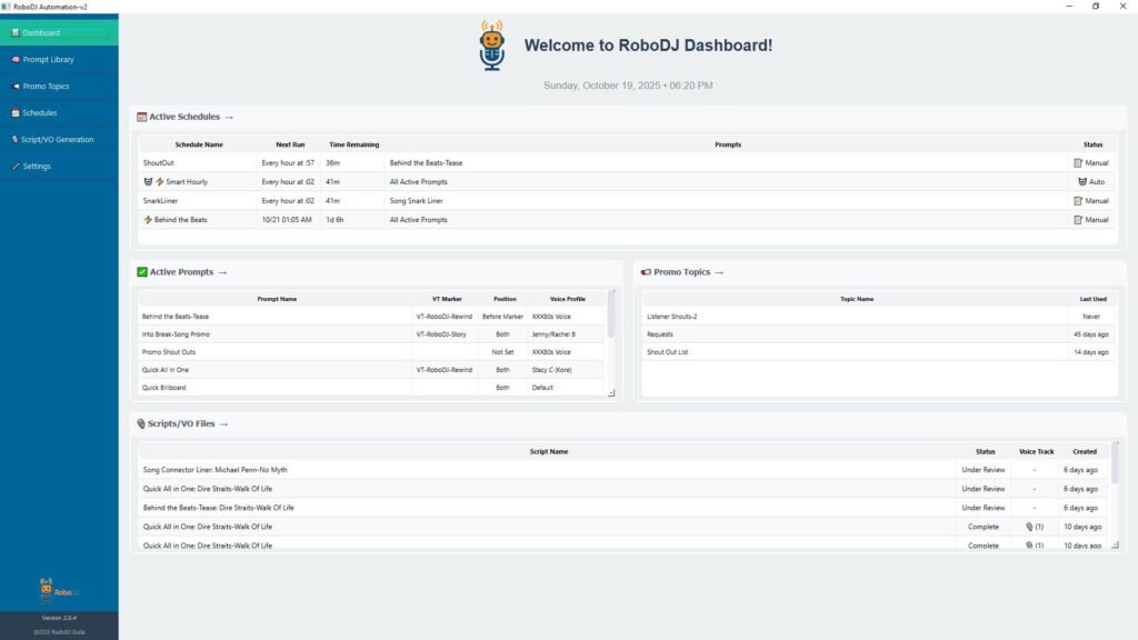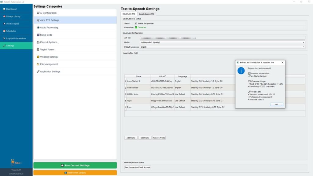 • More AI Voices - Add up to 16 voices to RoboDJ! Eight voices each for ElevenLabs and Google Gemini.